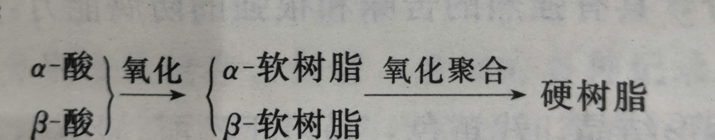 (2)酒花樹脂  酒花樹脂可分為硬樹脂和軟樹脂,而軟樹脂又由a酸、酸及未定性樹脂組成。